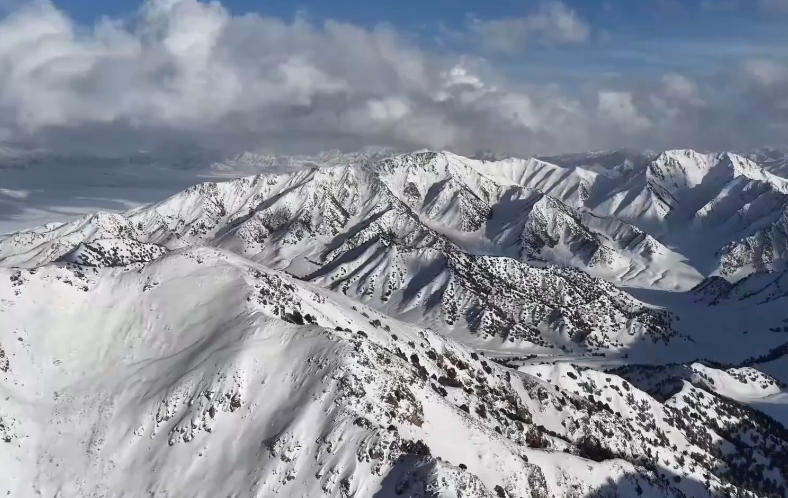 高空俯瞰,皑皑白雪覆盖群山,勾勒出舒展柔美的自然线条。天地澄澈明净,静谧辽阔间尽显雪域高原的雄浑与灵秀,勾勒出独属于高原春日的清新意境。
